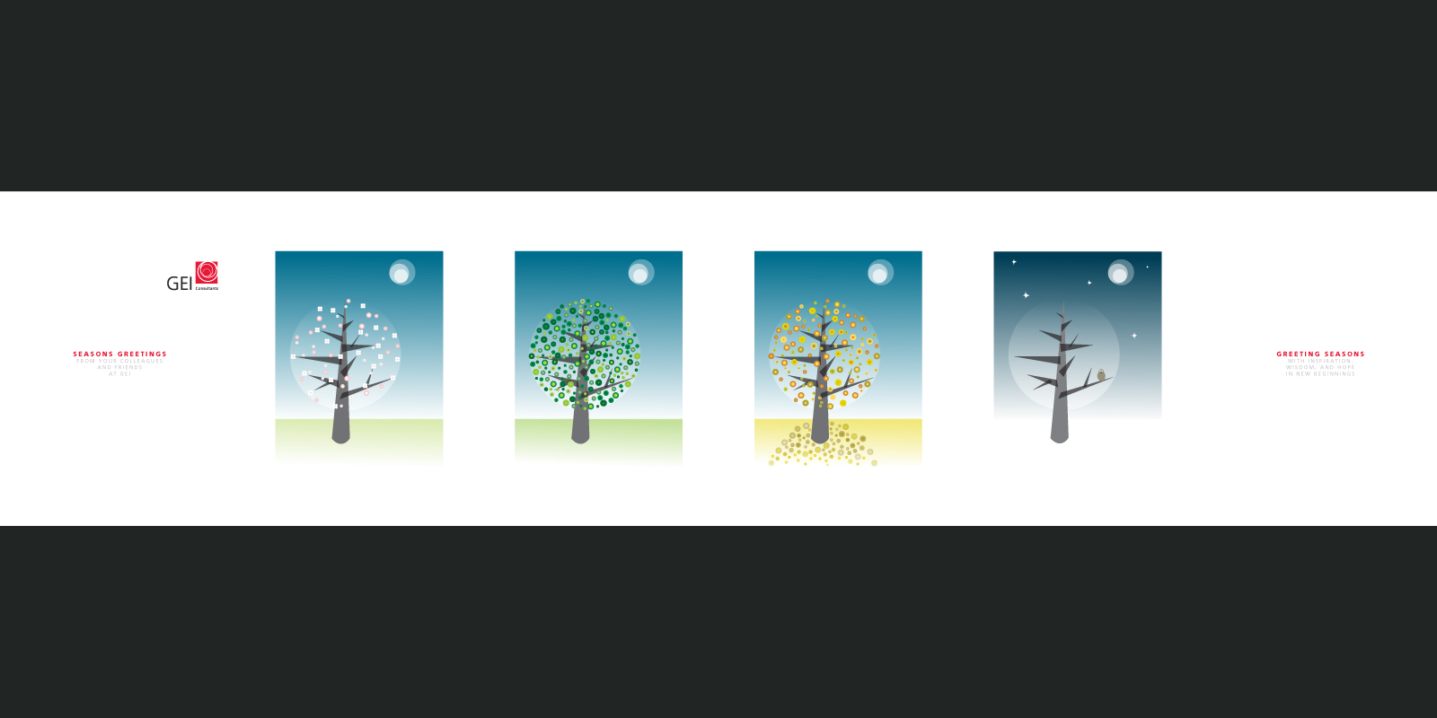 The holiday card for GEI Consultants received the People's Choice Award for Outstanding Communications. The card is designed as a series of four panels that perf-apart and become note cards. GEI recognizes the the power of a handwritten note while maintaining strong client relationships.